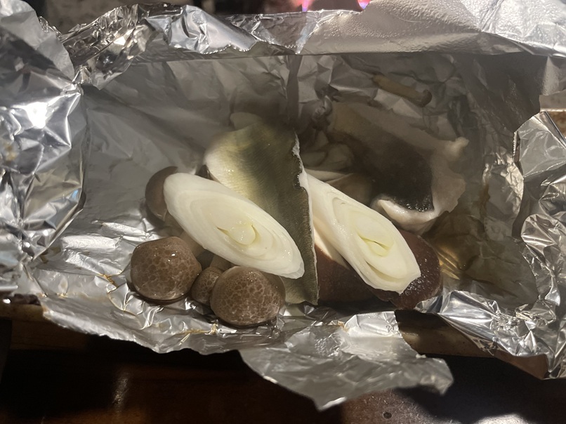アレルギーで刺身が食べられないので、代わりにホイル蒸しが提供されました。