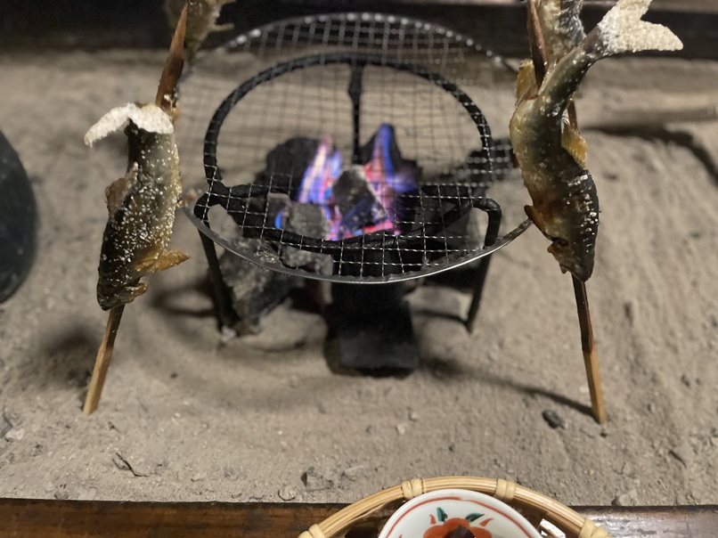 焼物は、最初から囲炉裏に串に刺さっている鮎の塩焼き。