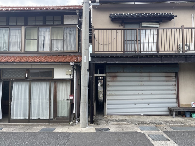 家と家の間にある大人一人がやっと通れる通路の先にあります。