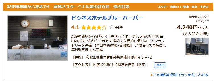 和歌山県東牟婁郡那智勝浦町勝浦434-2(ホテルブルーハーバー)