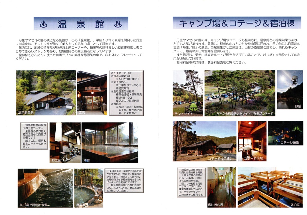 「丹生ヤマセミ温泉館」は、廃校した「丹生ノ川小学校」(にゅうのかわしょうがっこう)の跡地に平成13年(2001年)にオープンしました。