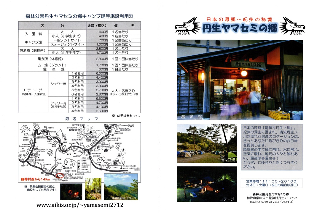 住所:和歌山県田辺市龍神村丹生ノ川275-2