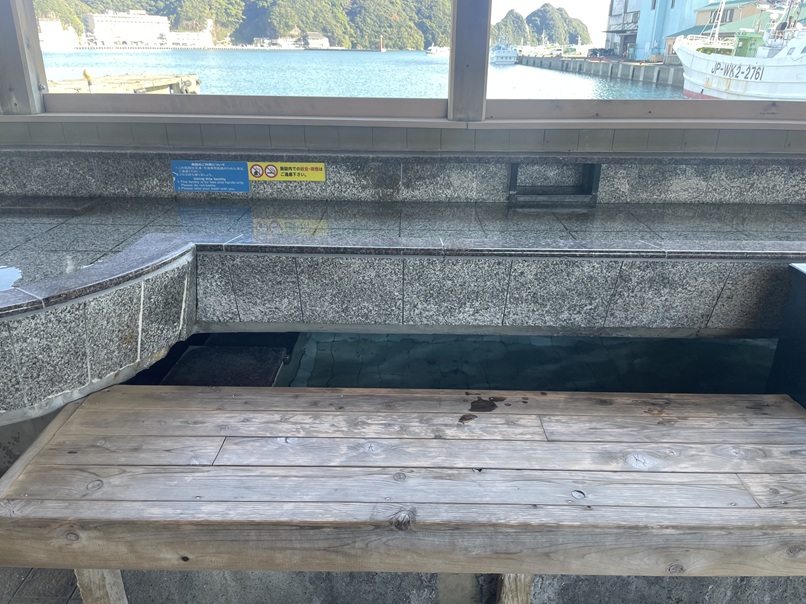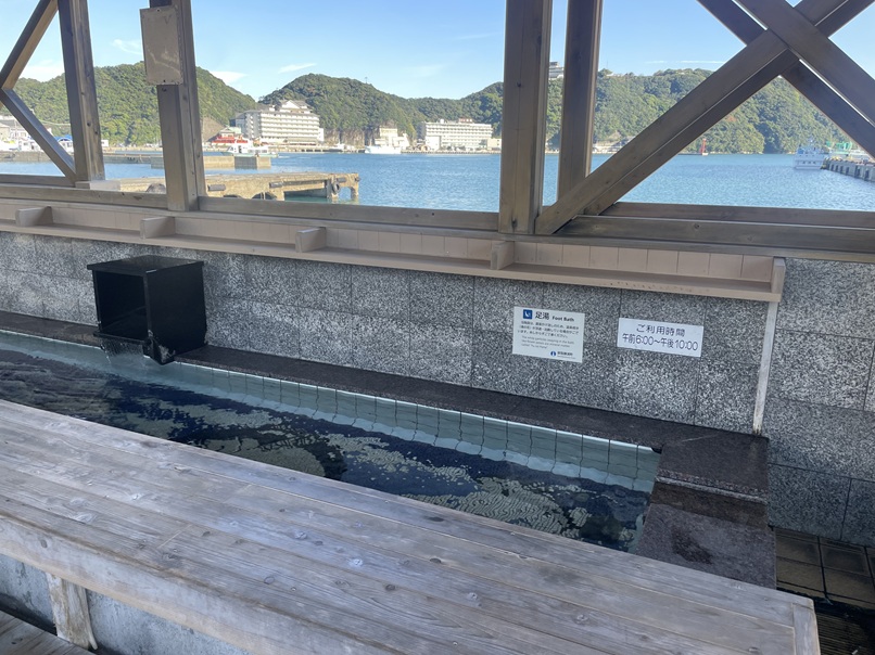 手湯の下は足湯になっていて、ベンチに腰掛けて手も足も温泉を楽しみながら海の景色を楽しむことが出来ます。